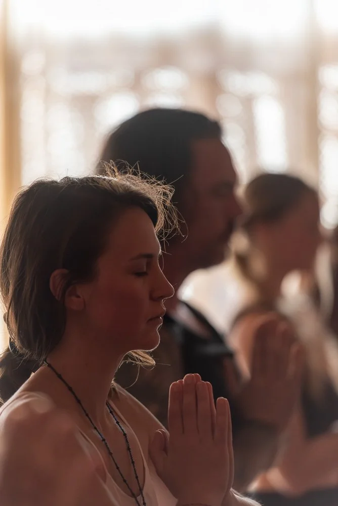 Jim Campbell — yoga teacher, photographer, and Boulder local with twenty years of practice — works with the instructor in advance to shape a sequence that flows well and creates maximum opportunity for striking images. During class he moves unobtrusively through the room. Most students forget he's there.
